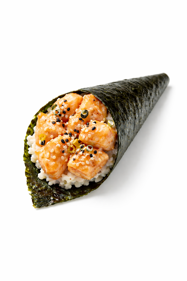 Témaki Saumon frais juste poêlé, sauce sésame, riz parfumé, algue nori